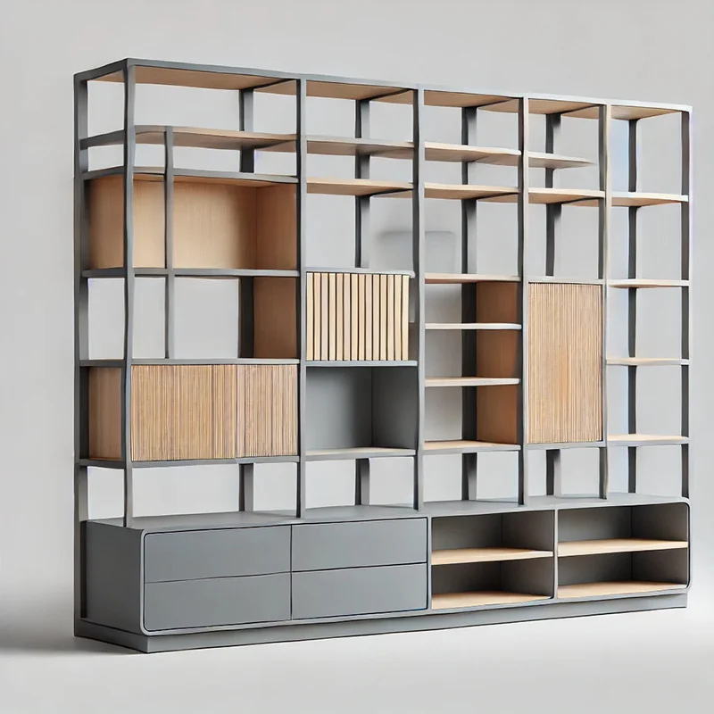 Nowoczesny regał to doskonałe rozwiązanie dla każdego, kto poszukuje stylowego i funkcjonalnego mebla do swojego domu lub biura. Zaprojektowany z myślą o wszechstronnym zastosowaniu, regał świetnie sprawdzi się zarówno jako biblioteczka na książki, jak i miejsce do przechowywania dekoracji, roślin, ramek na zdjęcia czy pamiątek rodzinnych. Dzięki minimalistycznemu designowi i uniwersalnym kolorom, takim jak szary, brązowy czy niebieski, z łatwością dopasuje się do każdego wnętrza, od nowoczesnych przestrzeni po klasyczne aranżacje.